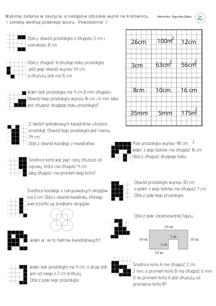 Jako formę sprawdzenia się, uczniowie będą mieli za zadanie rozwiązać poniższą kartę i przesłać mi wszystkie obliczenia.