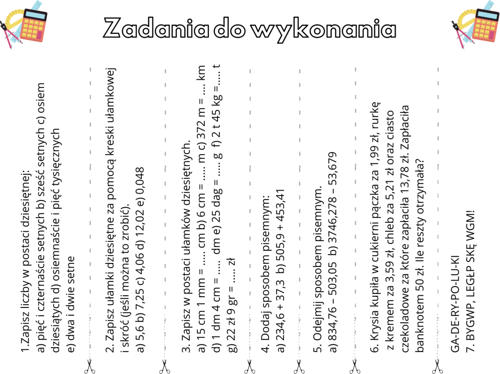 Zadania z ułamków dziesiętnych: