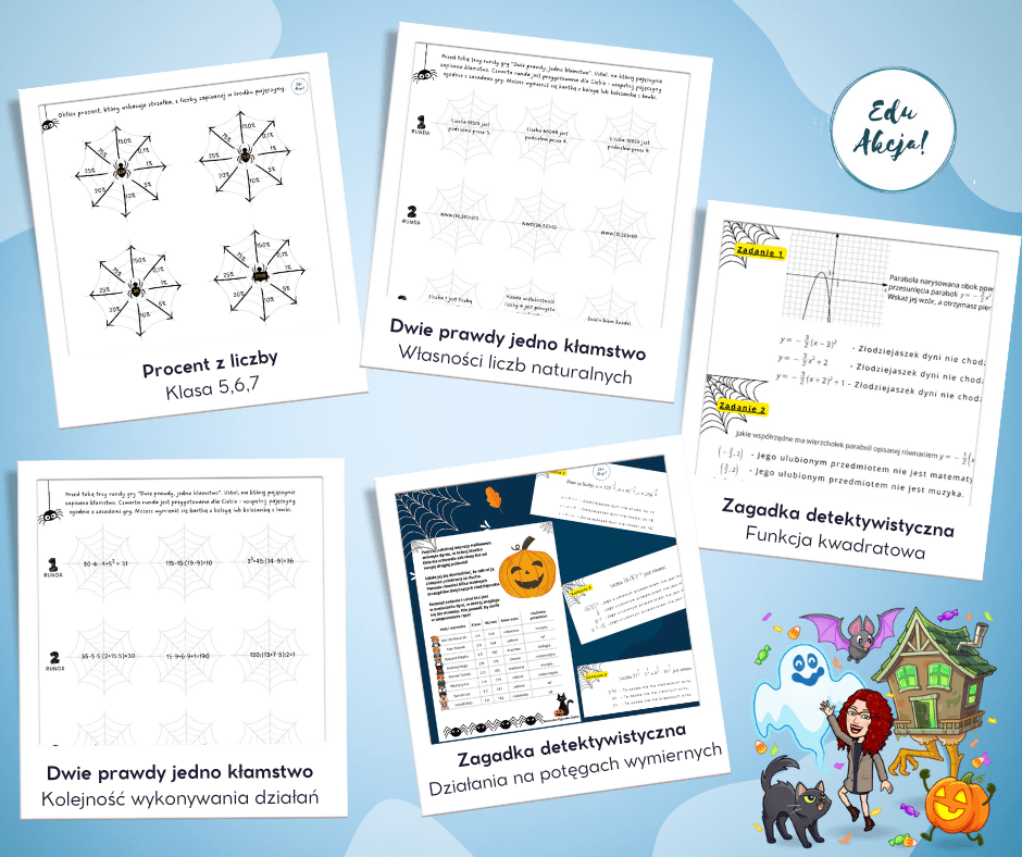 Zostawiam Wam dziś materiały do wykorzystania na październikowych i listopadowych lekcjach matematyki z Halloween w tle, zarówno w szkole podstawowej, jak i liceum 🙂